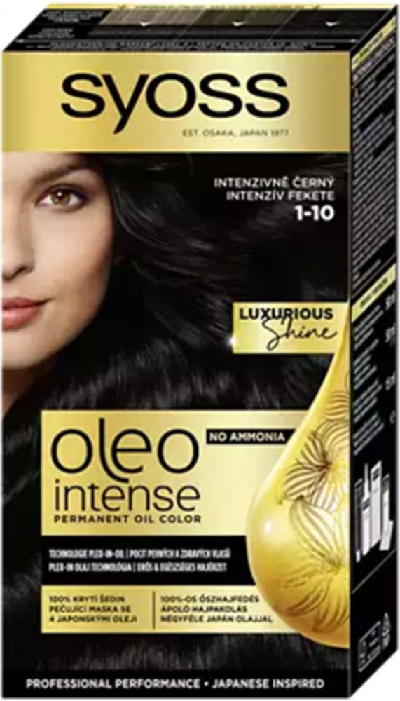 Syoss Oleo Intense 1-10 Intenzivní černý: Dosáhněte hlubokého, intenzivního odstínu černé s barvou Syoss Oleo Intense 1-10. Bezamoniaková, olejem obohacená formule zajišťuje dlouhotrvající barvu, 100% krytí šedin a zdravě vypadající vlasy. Vlastnosti Dlouhotrvající barva na vlasy Pečující maska se 4 japonskými oleji Bez amoniaku Dokonalé krytí šedin Pocit pevných a zdravých vlasů Technologie Syoss...