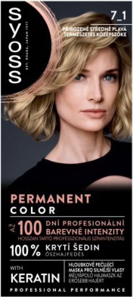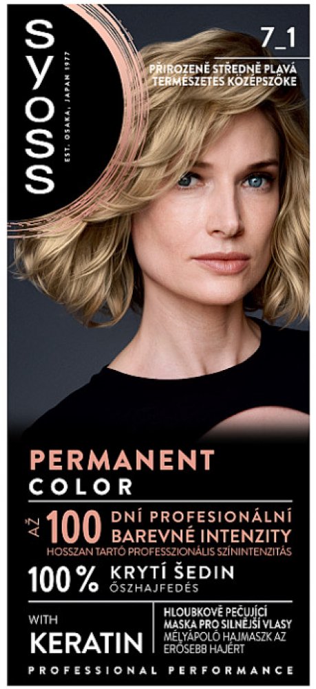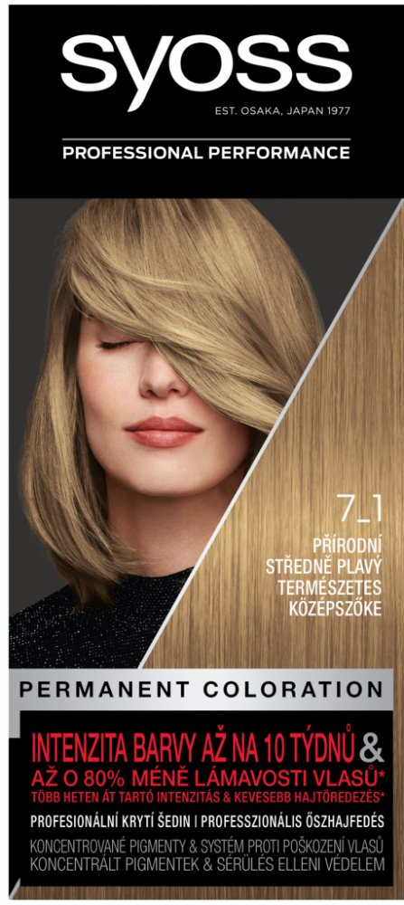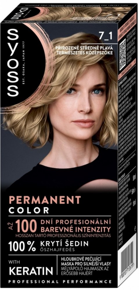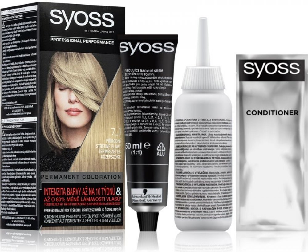 Intenzita barvy až na 10 týdnů amp; až o 80% méně lámavosti vlasů*. Přesná aplikace bez stékání pro profesionální barevný výsledek. Koncentrované barevné pigmenty: Barevné pigmenty pronikají hluboko do vlasových vláken pro intenzivní barvu až na 10 týdnů a profesionální krytí šedin. Profesionální péče proti poškození: Technologie SalonPlex obnovuje poškozené vlasové vazby a regeneruje vlas zevnitř. Receptura s keratinem obaluje vlasovou kutikulu pro hladký a posílený povrch vlasových vláken. Pro zlepšení viditelné kvality vlasů* a až o 80 % méně lámavosti*. *v porovnání s neošetřenými vlasy. Vlastnosti Syoss barva na vlasy: Dlouhotrvající barvení. Profesionální krytí šedin. Koncentrované pigmenty amp; systém proti poškození vlasů. Obnovuje poškozené vlasové vazby a regeneruje vlas zevnitř. Obsahuje keratin pro hladký a posílený povrch vlasových vláken. Až o 80 % méně lámavosti. Intenzita barvy až na 10 týdnů. Obsah balení: 1 tuba pečujícího barvicího krému 50 ml, 1 aplikační lahvička s vyvíječem 50 ml, 1 sáček balzámu SalonPlex 15 ml, 1 návod k použití, 1 pár rukavic.