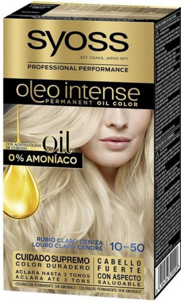Chcete vylepšit svůj vzhled a podtrhnout svůj půvab? Trvalá barva Olio Intense Syoss Nº 10,50 Světlá blond - popelavá vám toto přání pomůže splnit! Využívejte přednosti a výhody produktů značky Syoss a dalších produktů pro péči o vlasy od 100% originálních značek.