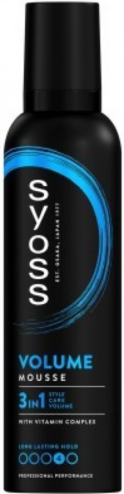 Syoss Volume pěnové tužidlo 3v1 - styl, péče, objem. S vitamínovým komplexem, kombinací panthenolu a niacinamidu, pro zpevněnou strukturu vlasů. Okamžitý objem a efekt proti slehnutí vlasů. Nelepivá fixace, bez viditelných zbytků, snadno se vyčesává.