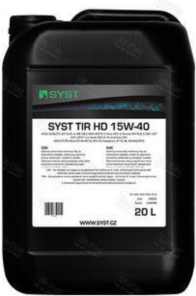 SYST TIR HD 15W-40 je vysoce výkonný motorový olej na minerálním základě, určený pro celoroční provoz užitkových i osobních vozidel. Vyhovuje požadavkům pro splnění emisní třídy EURO 4 a nižších. Výkonnost tomuto oleji propůjčuje směs velmi kvalitních minerálních základových olejů s vysoce kvalitními aditivy.