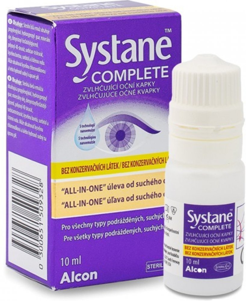 Lze použít před nasazením kontaktních čoček a/nebo po vyjmutí kontaktních čoček z očí (Zvlhčující oční kapky Systane® COMPLETE BEZ KONZERVAČNÍCH LÁTEK nelze používat při nošení kontaktních čoček, ale lze je používat před nasazením kontaktních čoček a/nebo po vyjmutí kontaktních čoček z očí.)