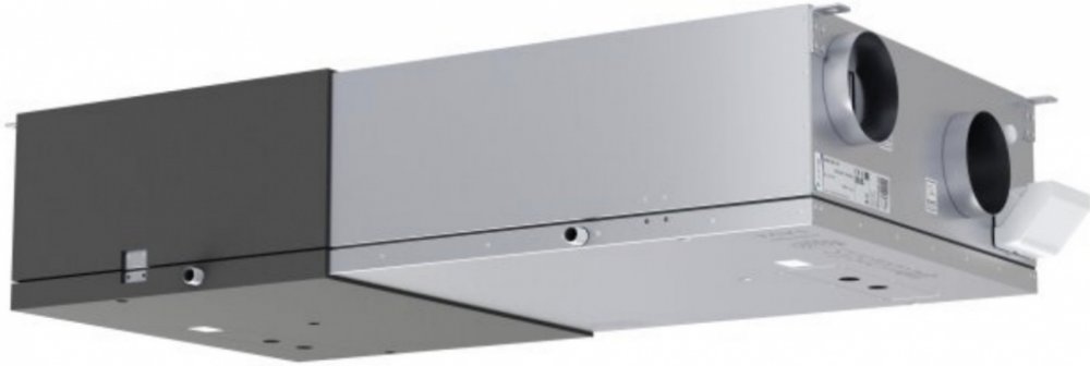 Větrací jednotka Systemair SAVE VSC 200 je vzhledem k nízké výšce a horizontální orientaci hrdel určena pro podstropní montáž.