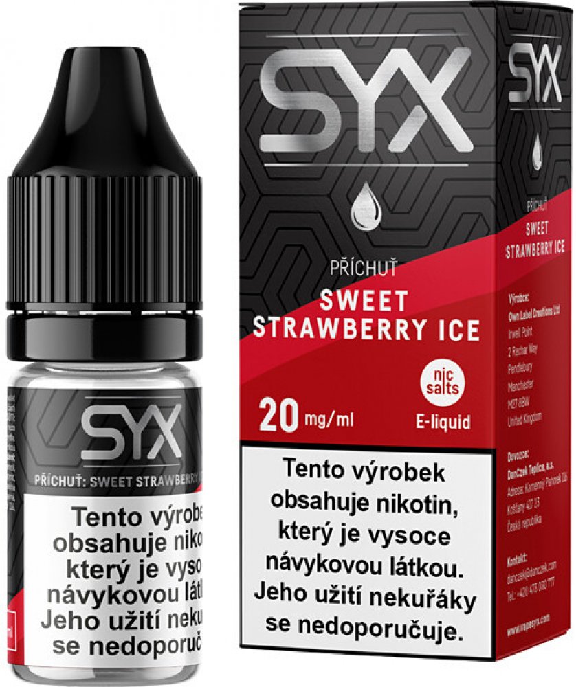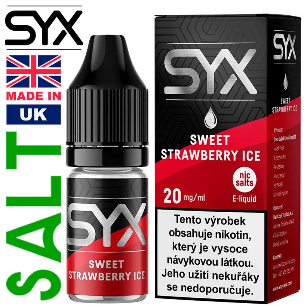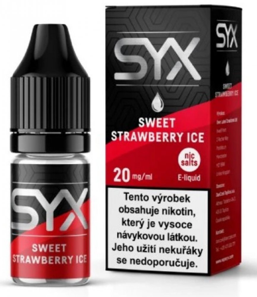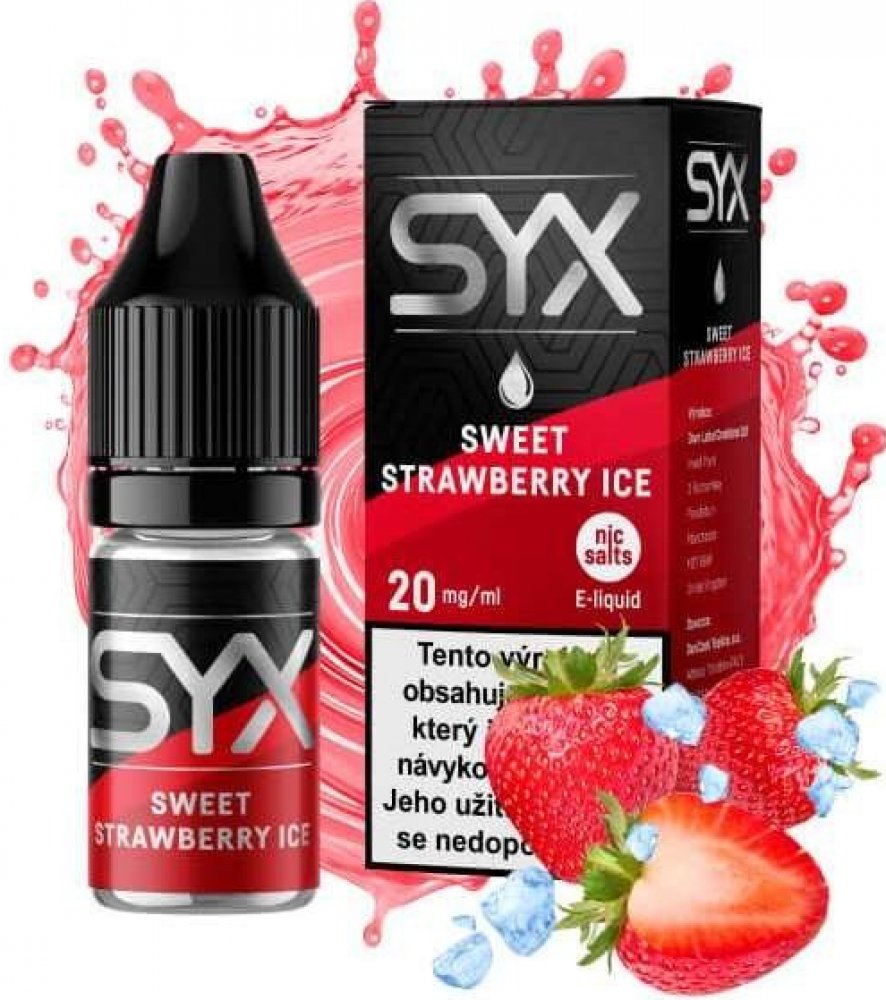 E-liquidy SYX NS - Sweet Strawberry Ice. Zamilujte se do sladkosti jahod s příchutí Sweet Strawberry Ice. Každý potah vám přinese sytou chuť čerstvých jahod, doplněnou osvěžujícím ledovým zážitkem, který vám dodává svěžest a energii.