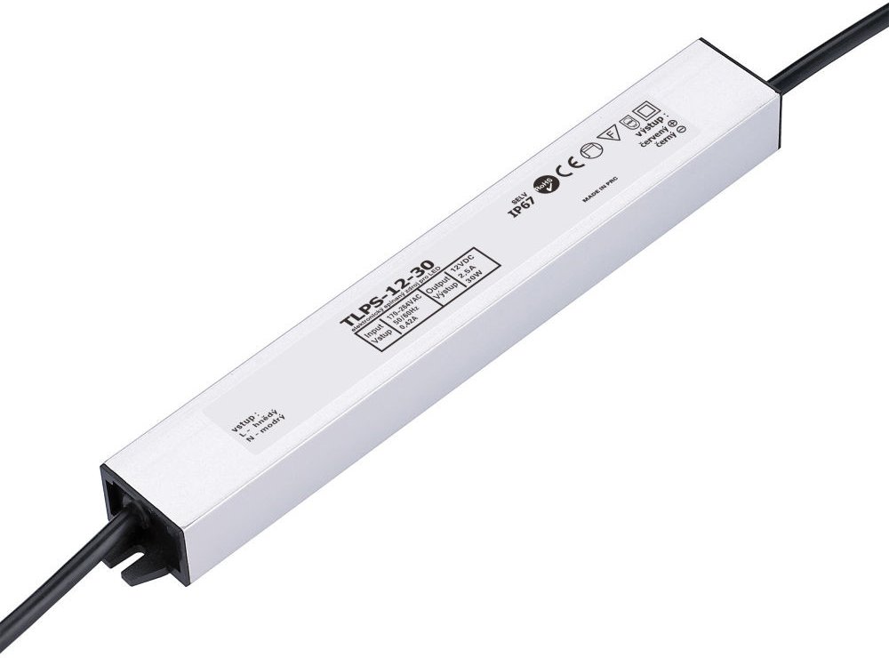 Voděodolné elektronicky spínané zdroje slouží pro napájení LED svítidel. Převádějí napětí ze sítě (AC 230V) na nízké napětí (DC 12V / 2,5A). Zdroje jsou opatřeny tepelnou pojistkou, pojistk...