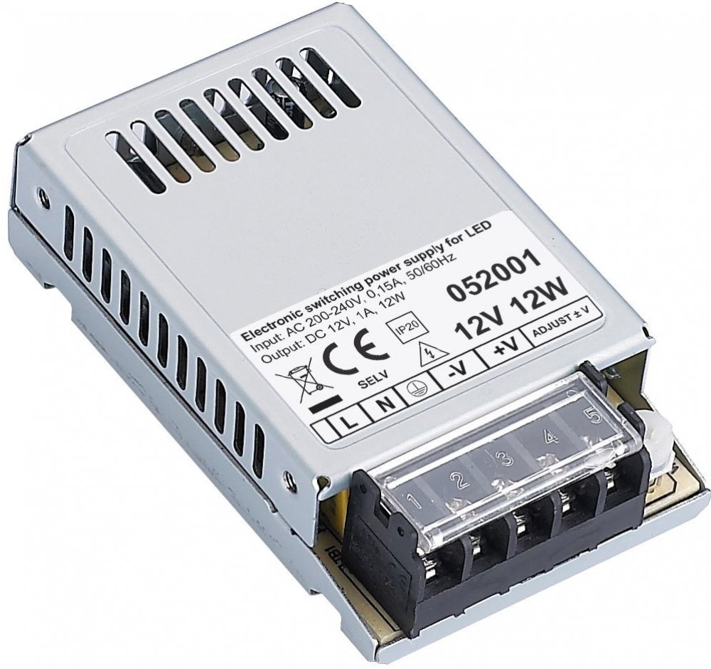 U tohoto transformátoru je možné manuálně dostavit výstupní napětí (±1V).LED elektronický spínaný zdroj (trafo) určený pro vnitřní použití.