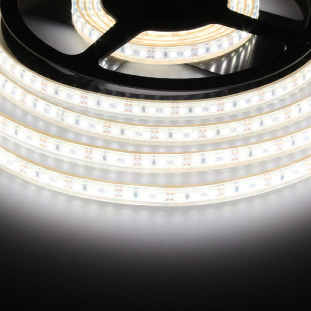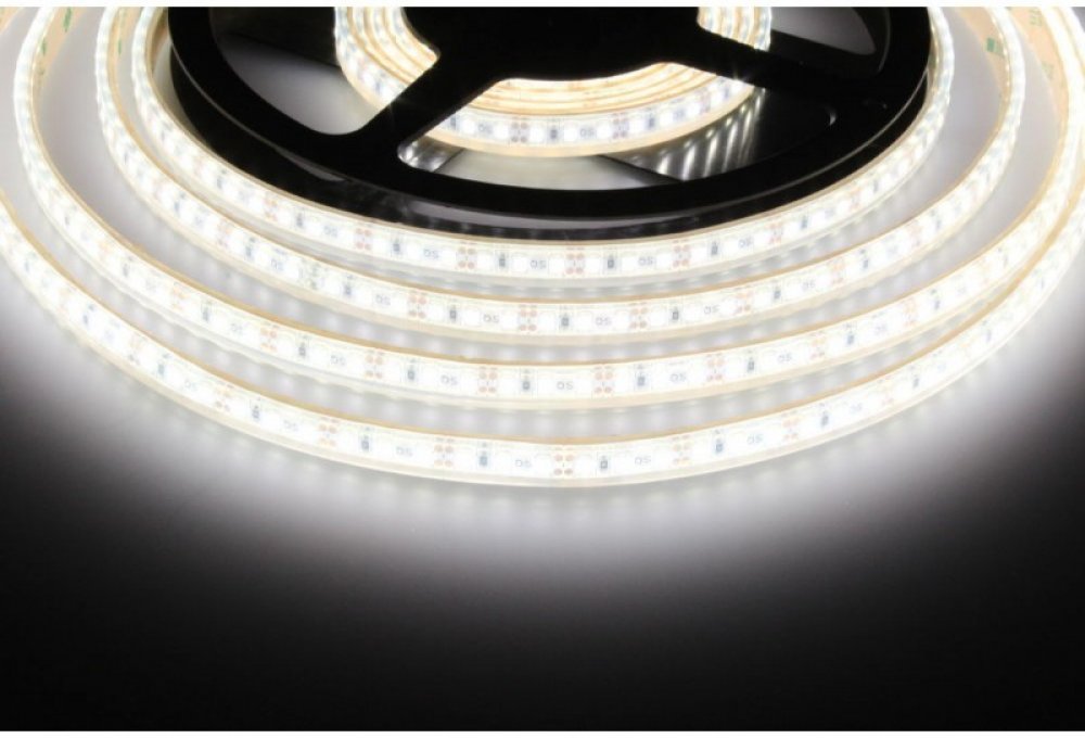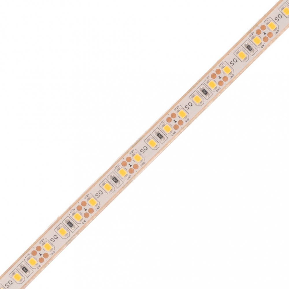Speciální LED pásek pro bezpečné vstupní napětí 12V DC (stejnosměrný) s příkonem 9,6W/metr a středně silnou svítivostí 800 Lm/metr, při teplotě chromatičnosti (barvy světla) 4000 - 4500K neutrální denní bíložlutá. Tento voděodolný LED pásek není zalitý v silikonu, ale je nasunutý do vodotěsné smršťovací bužírky, ze které mnohem lépe odchází zbytkové telo a čipy se tak nepřehřívají a mají mnohem delší životnost. Odolnost proti vodě je s krytím IP68, což umožňuje trvalé ponoření, je tedy vhodný k instalaci na přímý déšť, do zahradních jezírek a bazénků, nebo do akvárií. LED pásek se prodává na návinech dlouhých 5metrů a je dělitelný po 2,5cm. K ukončení pásku je potřeba dokoupit izolační koncovku IP68.