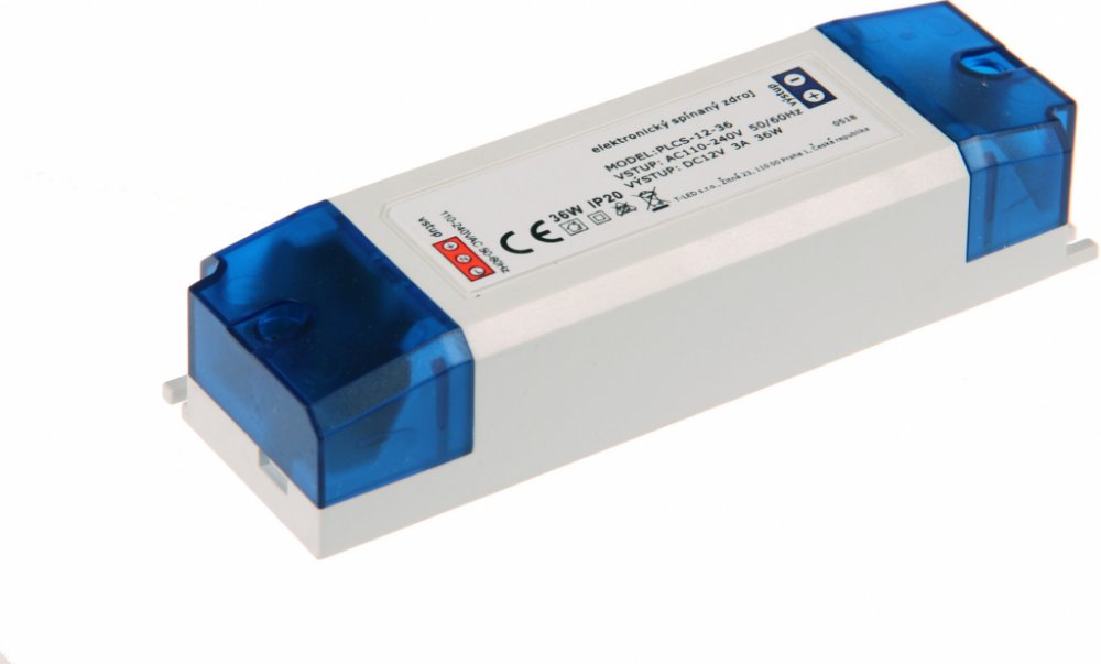 LED elektronický spínaný zdroj (trafo) určený pro vnitřní použití.