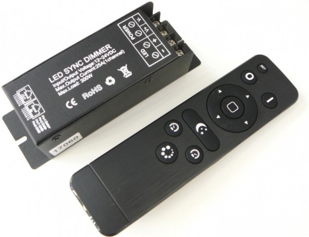 Radiofrekvenční sada ovladače a přijímače pro LED produkty, není nutná přímá viditelnost na přijímač. Ovladač má možnost nastavení vlastního nočního osvětlení, vypnutí se zpožděním, 2 světelné efekty, rychlé nastavení intenzity,pomocí RJ45 kabelů lze propojit neomezené množství přijímačů a synchronně ovládat ,