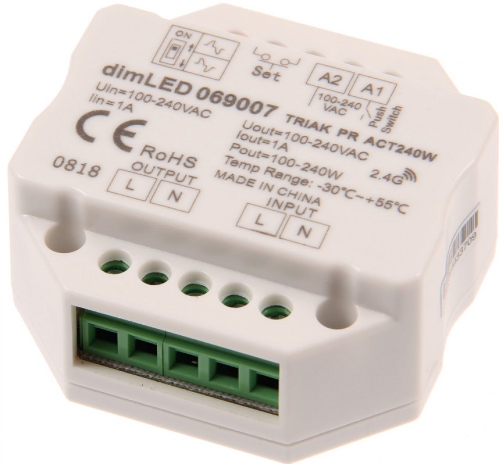 Stmívač a přijímač pro stmívatelné LED žárovky a panely na 230V s možnost použití tlačítka pod vypínače Vaší řady. Lze ovládat i různými druhy dálkových ovladačů řady dimLED z naší nabídky, kterými můžete zároveň ovládat i systémy na 12 či 24V jako LED pásky apod. Vše tedy poté můžete řídit jedním ovladačem a nemusíte mít poté například na LED pásky a žárovky 2 různé ovladače. Díky těmto možnostem patří mezi špičku na našem trhu.