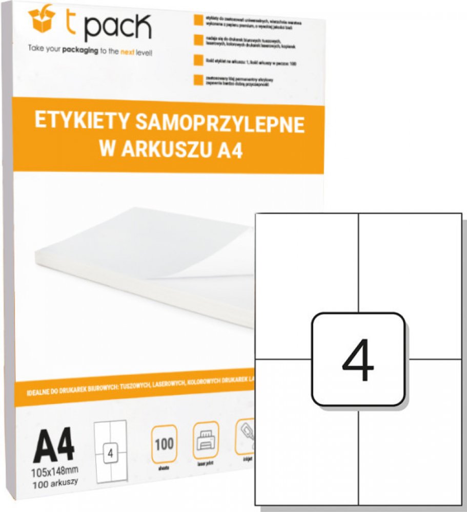 T-Pack ETA10514801 Samolepící etikety 105 x 148 mm 4 ks na A4 400 ks