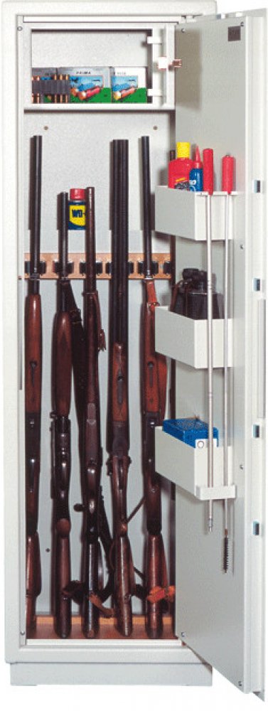 Skříně na zbraně SZ 6 jsou určeny k úschově 3 - 6 ks loveckých, sportovních či starožitných zbraní. Jsou vybaveny vnitřní uzamykatelnou schránkou na střelivo, třemi odkládacími poličkami a držákem na vytěráky. Hlavně zbraní jsou upevněny ve speciálních držácích. Vyrábějí se jako jednoplášťové. Zámkový mechanismus je tvořen třístran...