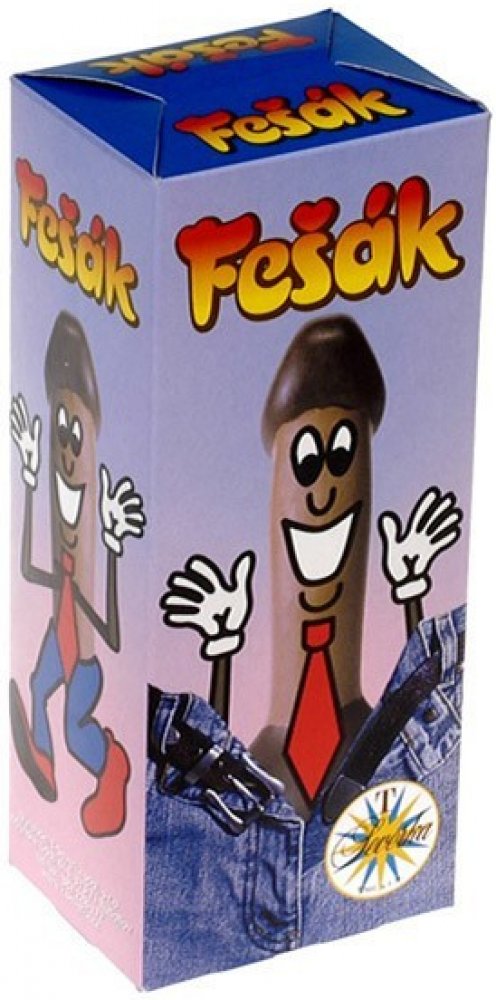 Ručně vyráběné čokoládové potěšení z pravé belgické čokolády s prvotřídní chutí - čokoládový penis Fešák v krabičce. Obsah kakaové sušiny v čokoládě nejméně 31,5 %.