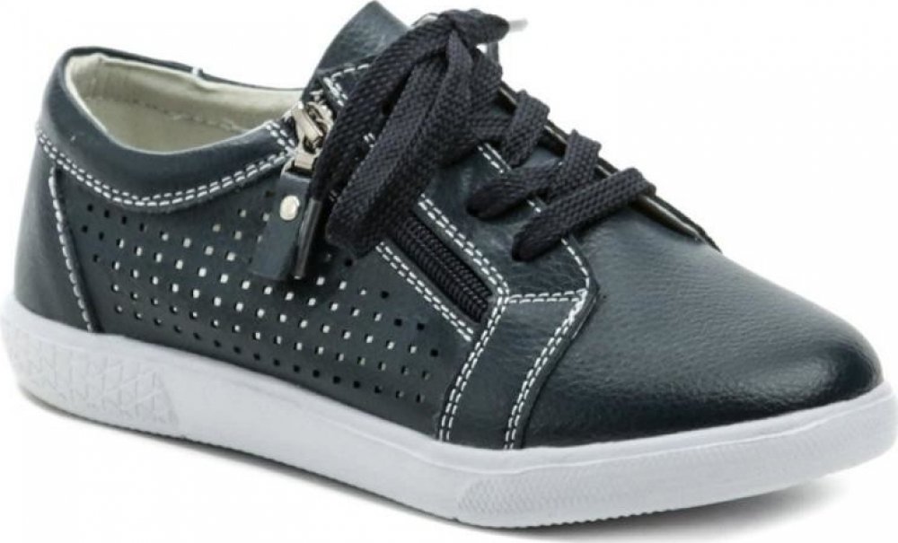Dětská letní vycházková obuv typu polobotky s tkaničkami a zipem.