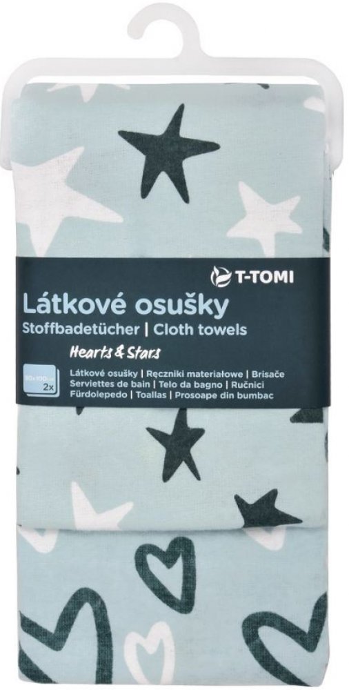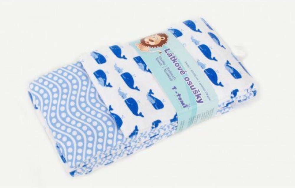 Kvalitní látkové osušky T-tomi s moderním barevným potiskem vyrobené z vysokogramážní bavlny spojené s jemným flanelem je možné využít nejen jako klasickou osušku na osušení miminka, ale i jako prostěradlo do kočárků a postýlek, nebo také jako lehkou přikrývku a na jiné všestranné využití. Velkou výhodou je skladnost osušky a rychle schnoucí materiál, který je velmi příjemný k dětské pokožce a nej...