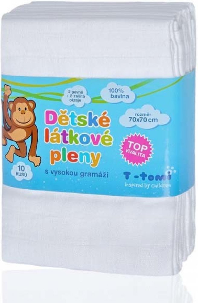 Tetra pleny TOP kvalita, bílá, 70x70x, 10ks Dětské látkové pleny T-tomi z vysokogramážní čisté bavlny jsou vyrobeny klasickou technologií tkaní v dutinné vazbě, což zaručuje zvýšenou savost a měkkost látkových plen. I při každodenním používání si pleny stále zachovávají svůj tvar a to díky vysoké kvalitě zpracování. látkové pleny T-tomi s vysokou gramáží bavlny 155g/m2 vysoká kvalita zpracován...