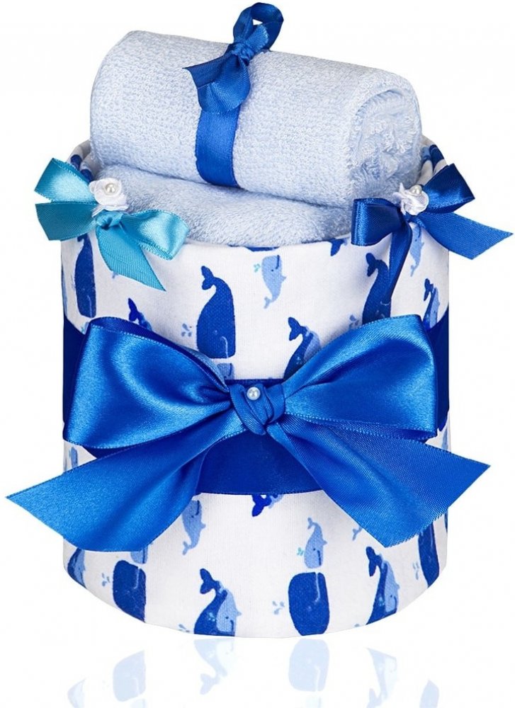 Ručně vyráběný plenkový dort T-tomi je krásným dárkem pro čerstvě narozená miminka nebo maminky v očekávání. Je balen v dárkové krabici s visačkou, na kterou je možné napsat vlastní věnování. \n 1x vysokogramážní látková plena s potiskem T-tomi\n 3x jednorázová plena \n 2x bambusová žínka T-tomi \n 1x luxusní dárková krabice \n 1x dárková kartička pro možnost osobního věnování\n stuhy a ozdoby v barvě dortu\nProdukty T-tomi splňují požadavky stanovené vyhláškou MZČR č.84/2001 Sb. o hygienických požadavcích na hračky a výrobky pro děti do 3 let.