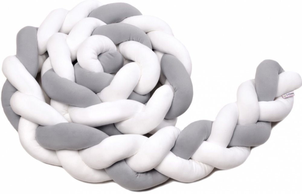 Pletený mantinel T-TOMI je moderním ochranným doplňkem zapleteným do copu o délce 360 cm a výšce 20 cm. Mantinel je vyrobený ze 100 % bavlny, vyplněný antialergickým dutým vláknem. Pletenec T-TOMI lze ovinout kolem celé vnitřní strany postýlky a Vašemu děťátku tak poskytne ochranu, pohodlí a pocit bezpečí. Miminko se bude cítit v postýlce příjemněji než ve volném otevřeném prostoru, bude spokojenější a zajistíte mu klidnější usínání. Lze jej také využít jako ochrannou ohrádku pro hraní mimo postýlku či jako zábranu do první velké postele.