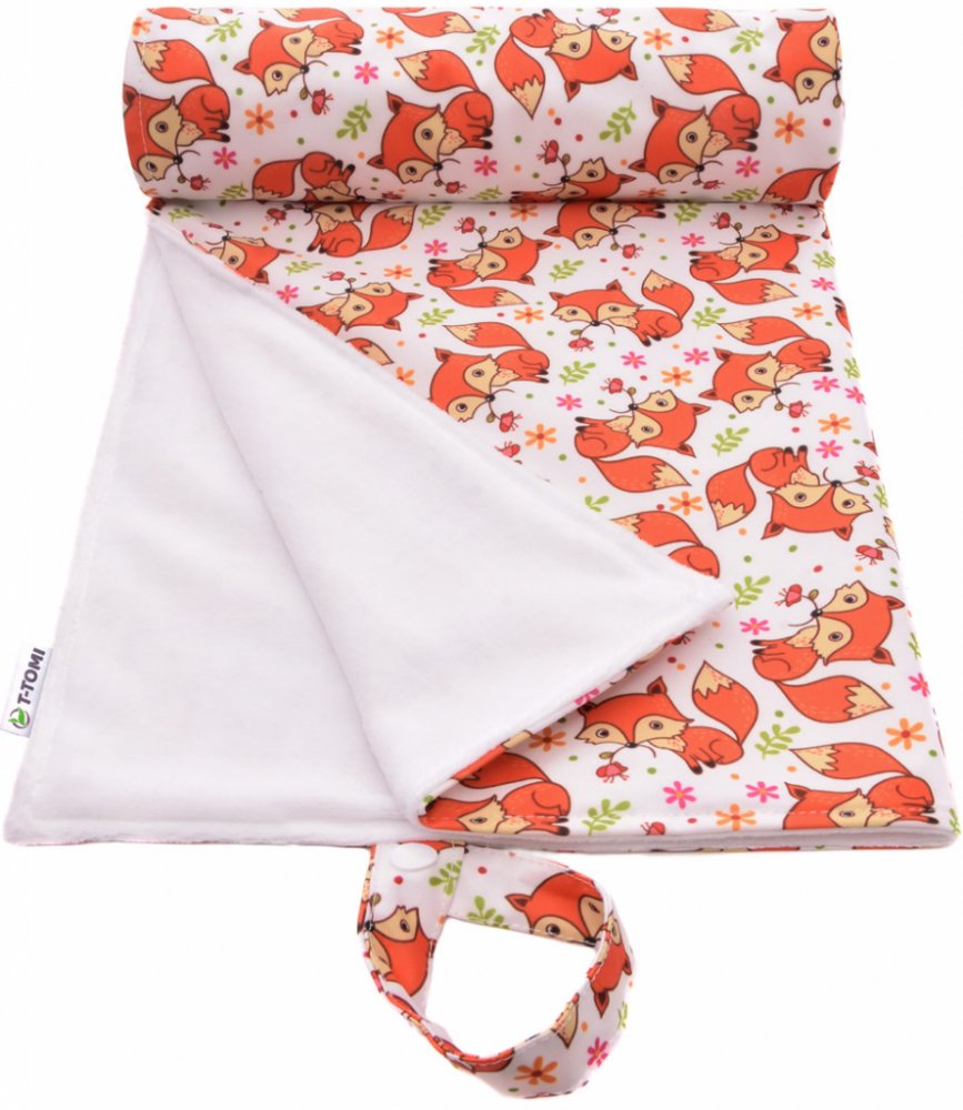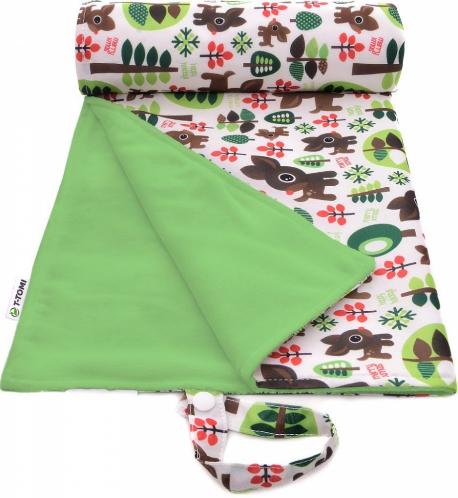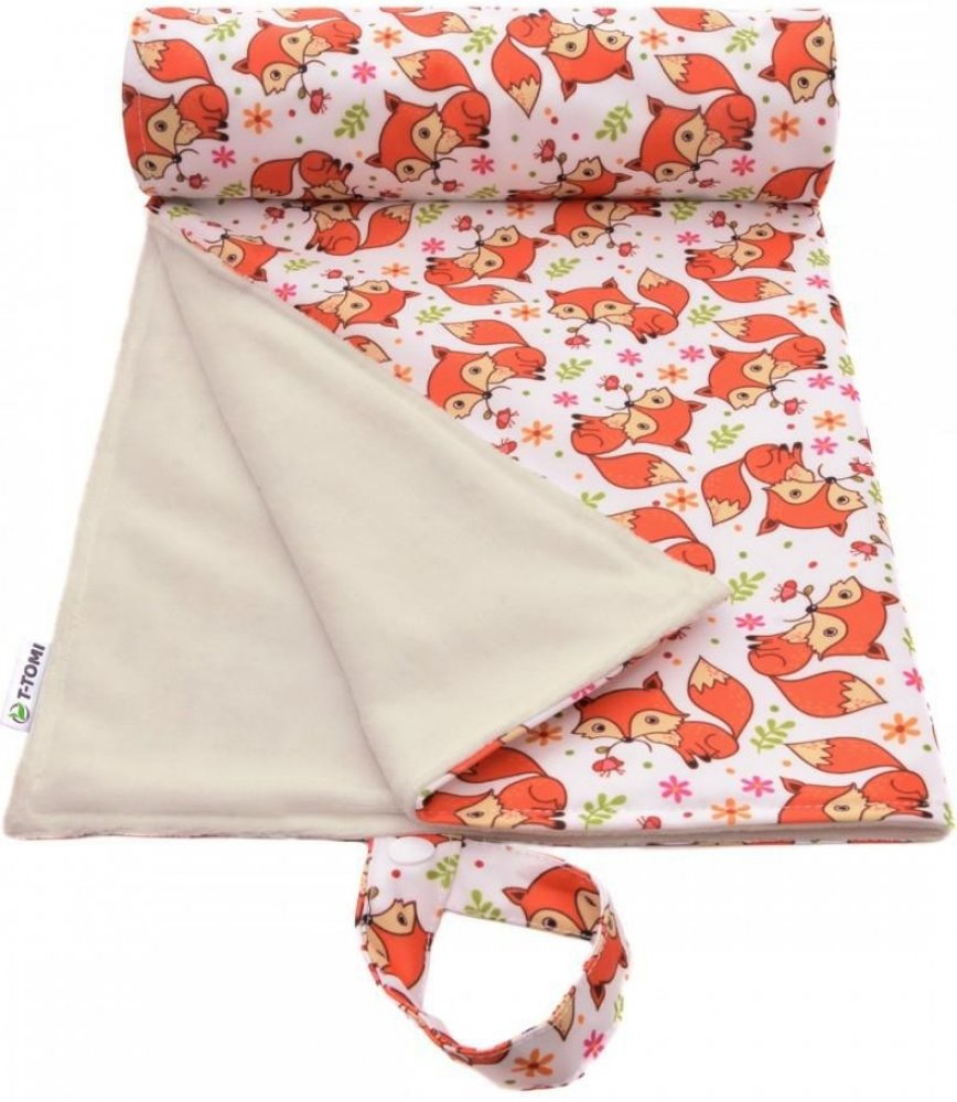 Pratelná přebalovací podložka T-TOMI, vyrobená z nepromokavého materiálu s dotykovou vrstvou z kojeneckého plyše, je praktická věc na doma i na cesty. Je možné ji využít na přebalování, jako hrací podložku, do kočárku nebo do postýlky. Podložku lze prakticky smotat do malé ruličky a vzít kamkoliv s sebou.