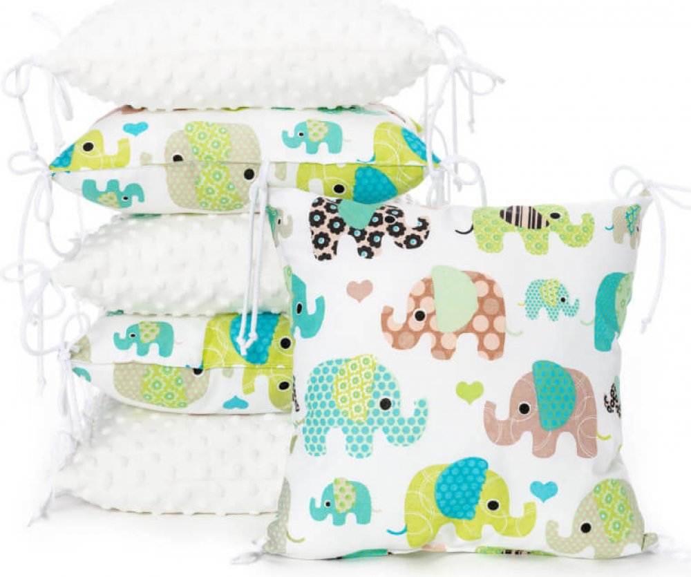 Polštářkový mantinel T-TOMI tvořený 6 kusy jednotlivých polštářků o velikosti 35 x 35 cm vyrobený ze 100% bavlny a z jemného, hřejivého a luxusního materiálu MINKY (3+3). Polštářky T-TOMI lze uvázat po boční straně postýlky a poskytnou tak Vašemu děťátku ochranu, pohodlí a bezpečí zároveň. Miminko se bude cítit v postýlce příjemněji než ve volném otevřeném prostoru, bude klidněji usínat.