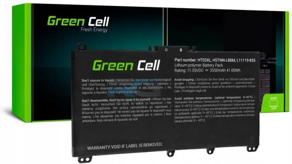Baterie Green Cell si po roce používání udrží více než 80 % své kapacity. Osvědčené a kvalitní baterie pro notebooky HP 15-R208NIA 15-R208NK 15-R208NLPoužité články a elektronika nejvyšší jakosti zaručí, že baterie spolupracuje s notebookem stejně jako originální baterieNejdůležitější vlastnosti:Lithium-iontové články Green Cell – značkové články poskytují vysokou reálnou kapacitu 2200mAh (32Wh)Vysoká kapacita zaručí dlouhý provoz – od 2,5 h 7 h výdrže baterie , v závislosti na konfiguraci notebooku a provozním režimuZnačková baterie s dlouhou životností – až 1000 plných nabíjecích cyklůModerní řídicí elektronika zajišťuje, že baterie funguje přesně jako originální baterie HP OA04Všechny kompatibilní modely notebooků naleznete v záložce "Vhodné pro notebooky" pod popisem nabídkyBaterie Green Cell si po roce používání udrží více než 80 % své kapacityGreen Cell je nejčastěji voleným výrobcem náhradních baterií notebooků. Tato značka zaručuje příznivý poměr ceny a kvality. Použité materiály včetně článků jsou stejně kvalitní jako originální baterie.Technické specifikace:Výrobce: Green CellTyp článku: Li-IonŽivotnost baterie: 2,5h až 7h výdrže baterieKapacita: 2200mAh (32Wh)Napětí: 14,4V (plně kompatibilní s 14,8V)Počet článků: 4Použité elektronické ochrany: přepětí, přehřátí, nadměrné vybití, přebitíCertifikáty: CE, RoHSStav: NováBarva: ČernáKód produktu: HP80