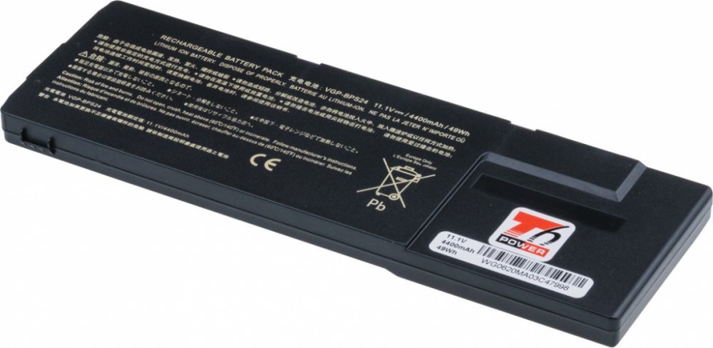 Typ: Li-Poly Kapacita: 4400 mAh (49 Wh) Barva: černá Napětí: 11.1 V Rozměry: 212.3x69x13.5 mm Hmotnost: 271 g Produktová čísla: VGP-BPS24 Kompatibilní modely: Sony VAIO PCG-41213M, Sony VAIO PCG-41214M, Sony VAIO PCG-41215L, Sony VAIO PCG-41216L, Sony VAIO PCG-41217L, Sony VAIO PCG-41218M, Sony VAIO PCG-41414M, Sony VAIO SVS131 serie, Sony VAIO SVS1311 serie, Sony VAIO SVS13112 serie, Sony VAIO SVS13113 serie, Sony VAIO SVS13115 serie, Sony VAIO SVS13116 serie, Sony VAIO SVS13117 serie, Sony VAIO SVS13118 serie, Sony VAIO SVS13119 serie, Sony VAIO SVS1312 serie, Sony VAIO SVS13120 serie, Sony VAIO SVS13123 serie, Sony VAIO SVS13125 serie, Sony VAIO SVS13126 serie, Sony VAIO SVS13127 serie, Sony VAIO SVS13128 serie, Sony VAIO SVS13129 serie, Sony VAIO SVS13133 serie, Sony VAIO SVS13136 serie, Sony VAIO SVS13137 serie, Sony VAIO SVS13138 serie, Sony VAIO SVS13A serie, Sony VAIO SVS1511 serie, Sony VAIO SVS15115 serie, Sony VAIO SVS15116 serie, Sony VAIO SVS15118 serie, Sony VAIO SVS15119 serie, Sony VAIO SVS1512 serie, Sony VAIO SVS15125 serie, Sony VAIO SVS15126 serie, Sony VAIO SVS15128 serie, Sony VAIO SVS15129 serie, Sony VAIO SVS15136 serie, Sony VAIO SVS15138 serie, Sony VAIO VPC-SA2 serie, Sony VAIO VPC-SA23 serie, Sony VAIO VPC-SA25 serie, Sony VAIO VPC-SA26 serie, Sony VAIO VPC-SA27 serie, Sony VAIO VPC-SA28 serie, Sony VAIO VPC-SA3 serie, Sony VAIO VPC-SA33 serie, Sony VAIO VPC-SA35 serie, Sony VAIO VPC-SA36 serie, Sony VAIO VPC-SA38 serie, Sony VAIO VPC-SA4 serie, Sony VAIO VPC-SA45 serie, Sony VAIO VPC-SB11 serie, Sony VAIO VPC-SB16 serie, Sony VAIO VPC-SB17 serie, Sony VAIO VPC-SB18 serie, Sony VAIO VPC-SB19 serie, Sony VAIO VPC-SB1A serie, Sony VAIO VPC-SB1B serie, Sony VAIO VPC-SB1C serie, Sony VAIO VPC-SB1S serie, Sony VAIO VPC-SB1Z serie, Sony VAIO VPC-SB25 serie, Sony VAIO VPC-SB26 serie, Sony VAIO VPC-SB27 serie, Sony VAIO VPC-SB28 serie, Sony VAIO VPC-SB29 serie, Sony VAIO VPC-SB2A serie, Sony VAIO VPC-SB2B serie, Sony VAIO VPC-SB2C serie, Sony VAIO VPC-SB2M serie, Sony VAIO VPC-SB3 serie, Sony VAIO VPC-SB36 serie, Sony VAIO VPC-SB37 serie, Sony VAIO VPC-SB38 serie, Sony VAIO VPC-SB39 serie, Sony VAIO VPC-SB4 serie, Sony VAIO VPC-SB47 serie, Sony VAIO VPC-SD18 serie, Sony VAIO VPC-SD19 serie, Sony VAIO VPC-SD1S serie, Sony VAIO VPC-SD27 serie, Sony VAIO VPC-SD28 serie, Sony VAIO VPC-SD29 serie, Sony VAIO VPC-SD47 serie, Sony VAIO VPC-SD48 serie, Sony VAIO VPC-SE15 serie, Sony VAIO VPC-SE16 serie, Sony VAIO VPC-SE17 serie, Sony VAIO VPC-SE19 serie, Sony VAIO VPC-SE1E serie, Sony VAIO VPC-SE1S serie, Sony VAIO VPC-SE1V serie, Sony VAIO VPC-SE26 serie, Sony VAIO VPC-SE2E serie, Sony VAIO VPC-SE2L serie, Sony VAIO VPC-SE2S serie