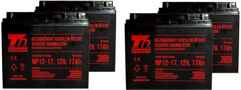 Zásadní vlastnosti produktu APC KIT RBC11, RBC55 - baterie T6 Power Nabíjecí baterie pro záložní zdroje T6 Power vás podrží při výpadku elektrické energie Postará se o to, že všechna vaše zařízení a systémy budou fungovat bez přerušení Typ baterie: bateriový článek Kapacita baterie je 68 Ah a její napětí činí 12 V Nabízená baterie pro záložní zdroje obsahuje olověný (Pb) článek Jedná se o alternativní baterii Rozměry baterie pro záložní zdroje T6 Power činí 18,1 × 30,4 × 16,7 cm (vך×h) O hmotnosti 20 kg V balení jsou obsaženy 4 baterie