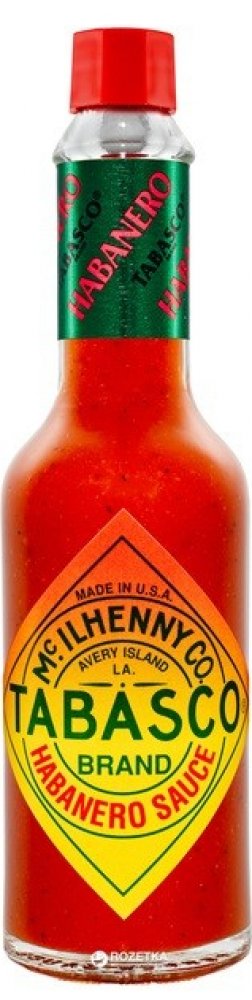 - Tabasco Red (destilovaný ocet, červené chilli, sůl)