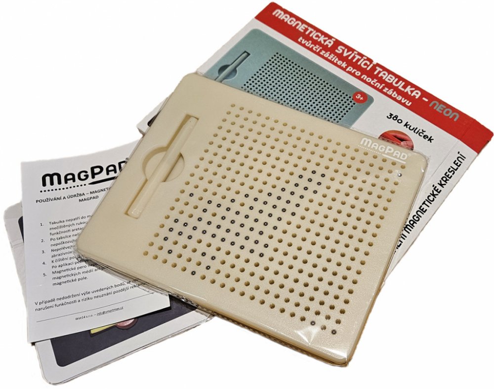 - Magnetické kuličky jsou pevně uzavřeny v tabulce a nelze je vyjmout.