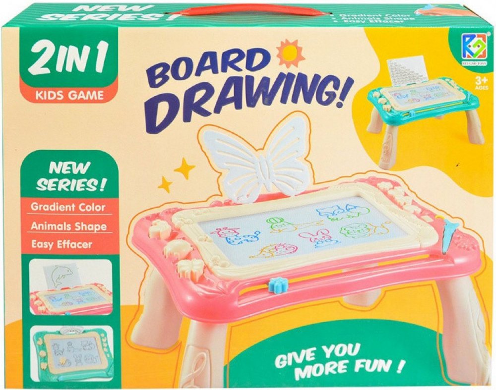 Tabulka magická 2 v 1.Kreslící tabule je skvělou hračkou při první nauce psaní, kreslení a rozpoznávání písmenek. Tabule je vyrobena z kvalitního plastu bez ostrých hran. Tabulka má dva druhy použití. Můžete ji použít samostatně nedo snadno nasadit přiložené nohy a používat tabulku jako stoleček.