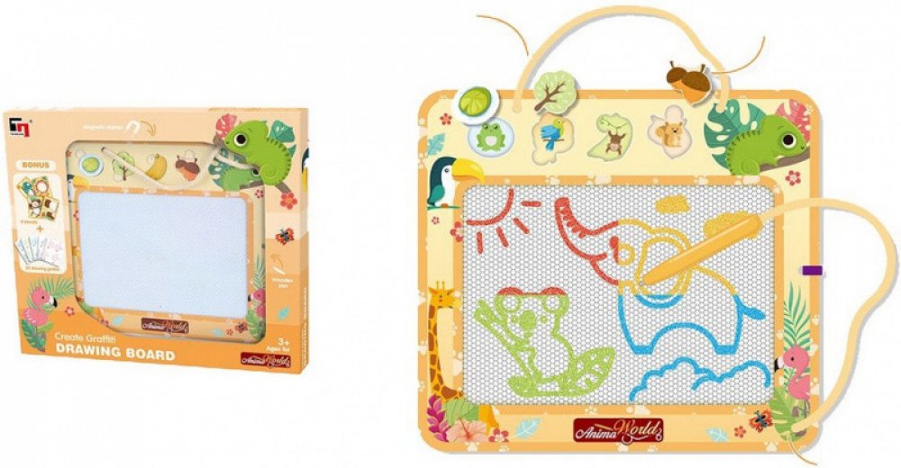 Barevná kreslící tabulka. Magnetickou tužkou nebo přiloženými razítky může dítě nakreslit krásný barevný obrázek. Skvělá hračka pro rozvoj kreativity, se kterou si dítě užije spoustu zábavy. Rozměr boxu: 34 x 30 x 3,5 cm. Vhodné pro děti od 3 let.