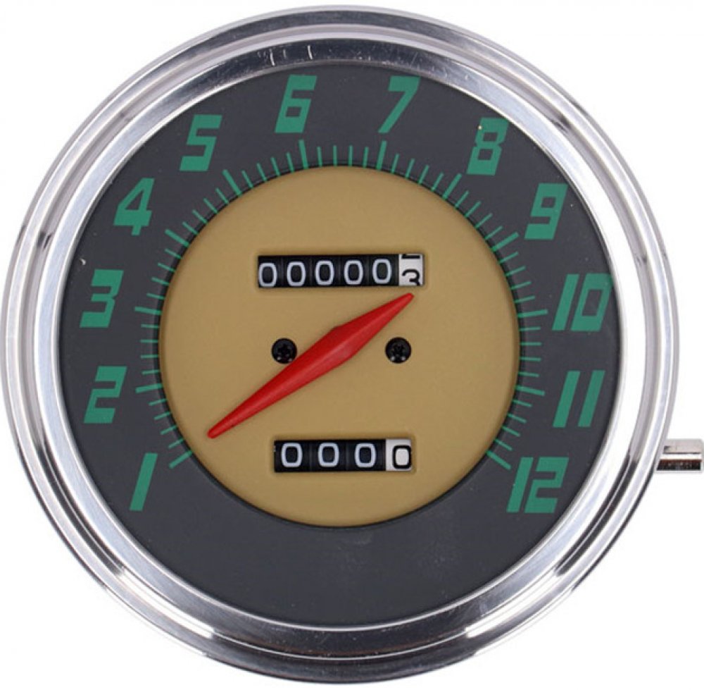 S konektorem kabelu rychloměru se závitem 5/8-18. Pouze pro vaši informaci: Pro účely identifikace jsme dřívější čelní plochy tachometrů ve stylu "FL" pojmenovali "modelovými roky". Tyto údaje nemusí přesně odpovídat skutečným modelovým rokům a slouží pouze jako reference. Většina tachometrů typu FL je k dispozici s ciferníky K.M.H. nebo M.P.H. Všechny tachometry od typu "36-40" až po typy "00-03" mají stejné rozměry a hodí se k přístrojové desce ve stylu FL, FLH, Fat Bob, FLST, FXST atd. namontované na nádrži. Upozorňujeme, že může být nutná malá úprava přístrojové desky, aby se správně umístil knoflík pro přenastavení. Převodový poměr 2:1 je vhodný pro většinu modelů s pohonem předních kol, převodový poměr 1:1 je vhodný pro většinu modelů s pohonem převodovky. Modely Softail z let 84-95 mohou mít jiný převodový poměr 2,24:1, kterých je uvedeno několik tachometrů. Poznámka: Směrovky z roku 1991 a novější se již samy neruší. - 60 M.P.H. = 1000 OTÁČEK (= 1:1) - 60 M.P.H. = 2000 OTÁČEK (= 2:1) - 60 M.P.H. = 2240 OTÁČEK (= 2,24:1) - 60 K.M.H. = 700 OTÁČEK (= 1:1) - 60 K.M.H. = 1400 OTÁČEK (= 2:1)