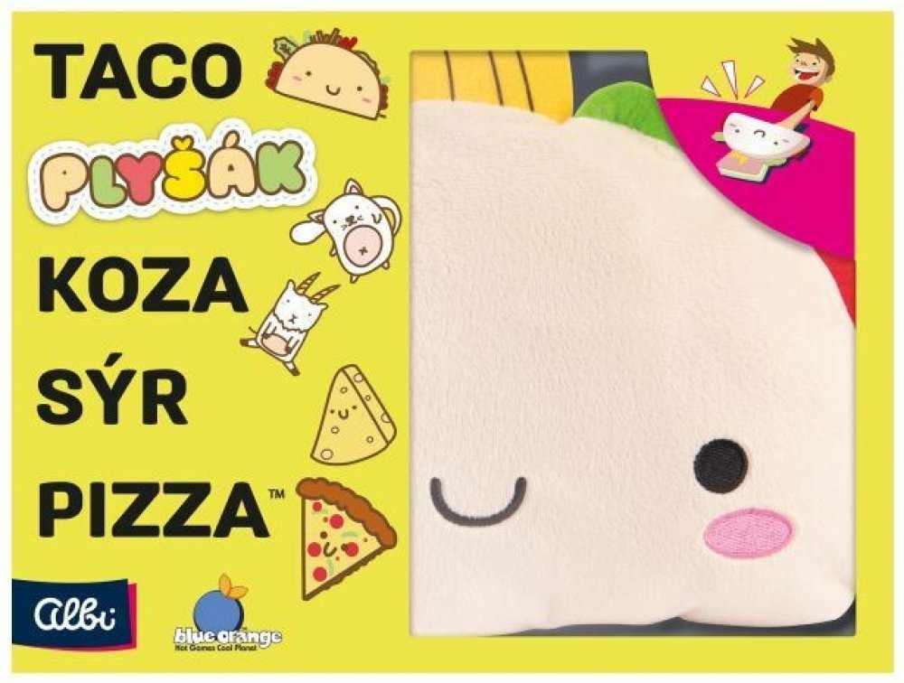 Hra Taco, plyšák, koza, sýr, pizza obsahuje: 64 karet, plyšového maňáska, česká a slovenská pravidla.