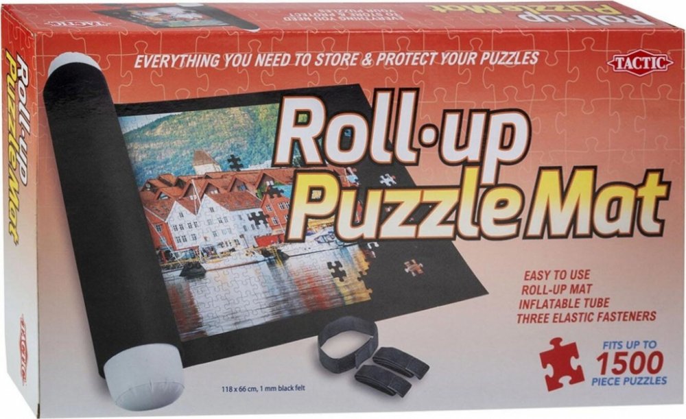 Elastická podložka pro skládání puzzle. Velikost rohože po rozložení: 118 x 66 cm, tloušťka 1 mm. V sadě s nafukovací trubicí a třemi elastickými sponami. Vhodné pro puzzle max. 1500 dílků.