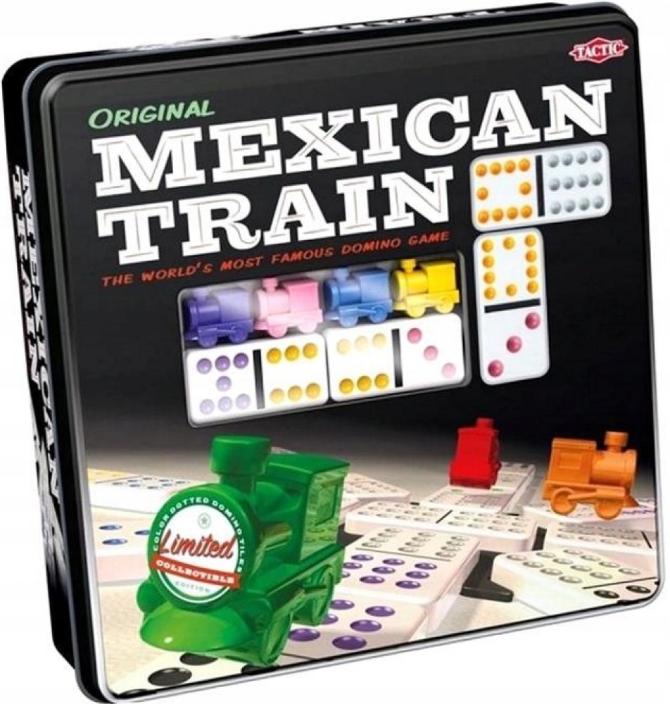 Jednou z nejhranějších variant domina na světě je mexický tah, známý také jako mexický vlak. Účelem hry je postavit řadu kostek domina od středu. Kromě toho je také povoleno postavit společnou řadu, známou také jako mexický vlak. Tato hra je vybavena vysokými kostkami domina a zábavnými staviteli vláčků. Je to nejoblíbenější hra s dominem na světě! Sada obsahuje 91 barevných dvojitých kostek domin...