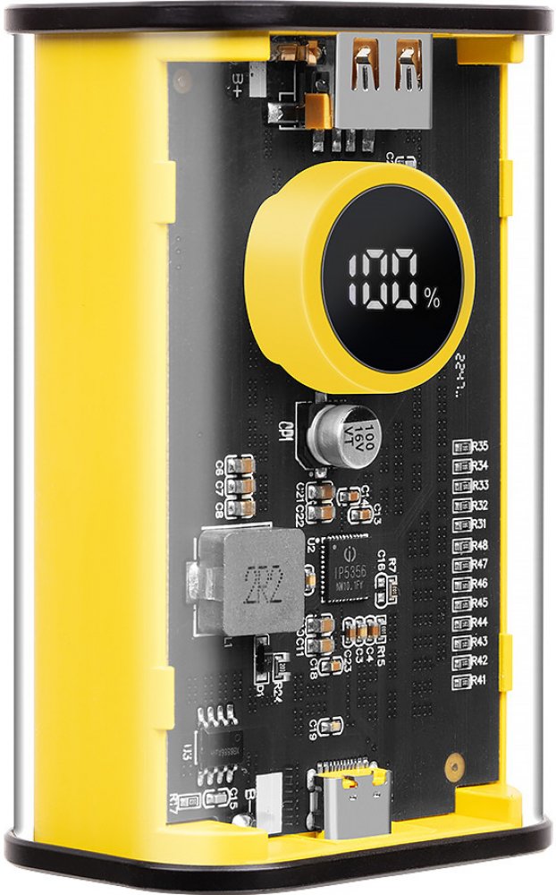 Sklo to není, ale průhledné to je. Tělo powerbanky je tvořeno velmi odolnou průhlednou skořepinou, navrženou tak,