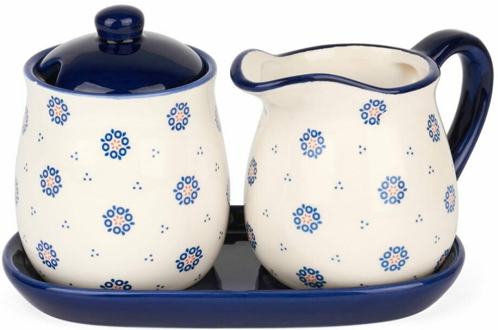 Mlékovka s cukřenkou má nejen velmi zajímavou barvu, ale je také zajímavě zpracovaná z hlediska designu ve stylu Folklor. Keramika, protože je z ní vyrobena, neabsorbuje pachy, takže skladované, připravované a servírované produkty v ní neztrácejí svou vůni a chuť.