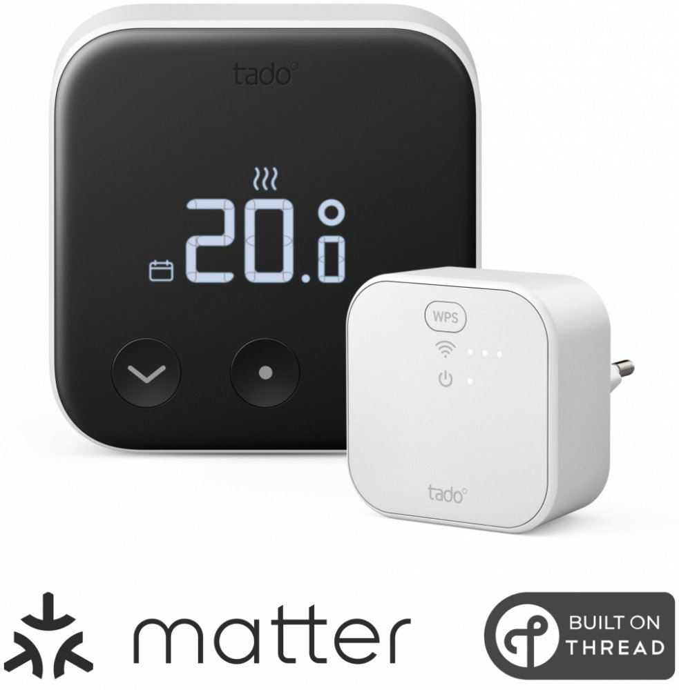 Tado X (Starter Kit) – chytrý kabelový termostatTado X vám poskytuje maximální kontrolu nad vaším vytápěním. Tento kabelový termostat nejen zajišťuje optimální teplotu ve vašem domově, ale také přináší úsporu energie díky inteligentním funkcím, jako je automatická detekce otevřených oken a geofencing. Termostat se dokáže přizpůsobit vašemu dennímu režimu, což zaručuje pohodlí a zároveň minimalizaci nákladů. Termostat je vytvořený v Německu odborníky na chytré vytápění. Klíčové vlastnosti kabelového termostatu Tado X (Starter Kit)Starter Kit obsahuje chytrý termostat + Tado X BridgeChytrý termostat vám ušetří až 28 % v nákladech na energieSnadná montáž na stěnuMůže být připojen kabelem ke kotli, podlahovému vytápění nebo k zónovému ventiluJe vhodný pro většinu kotlů a tepelných čerpadel (Relay nebo OpenTherm)Lze propojit s chytrými asistenty – funguje s Amazon Alexa, Apple HomeKit a Google AssistantInteligentní ovládání vytápění odkudkoli prostřednictvím mobilní aplikaceSoučástí...