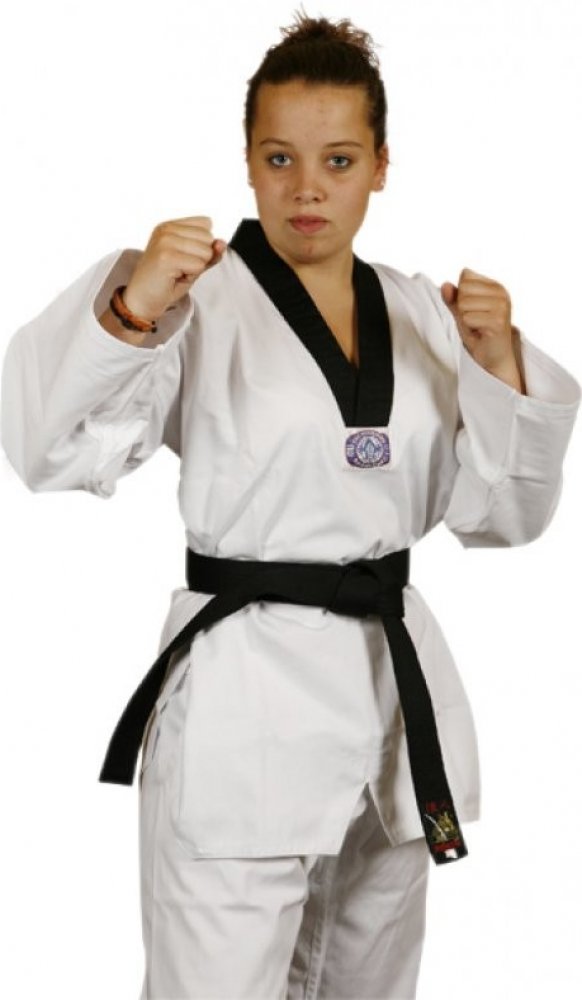 Taekwon-do kimono typu Speciál, ve složení: 45% polyesteru a 55% bavlny. Touto kombinací je dosaženo nízké hmotnosti, efektu rychlého schnutí a velmi dobrého žehlení. Kabátek je v provedení s rýhovaným povrchem : rib-cloth. Kalhoty s gumou v pase. Barevně řešeno: bílé kimono s bílou klopou. Luxusní potisk na zádech. Kimono dodáváme včetně bílého pásku.