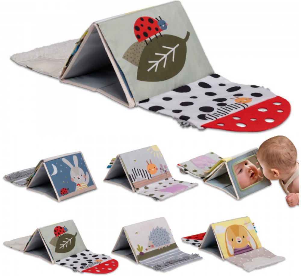 Podrobnosti o produktu 13455TAF Textilní knížka ve tvaru stolního kalendáře s vysoce kontrastními obrázky je ideální pro postavení před dítě při hře na bříšku. Výrazné obrázky, bezpečné velké zrcátko i šustivé elementy upoutají pozornost dítěte a pomáhají tak zabavit dítě při hře na bříšku.