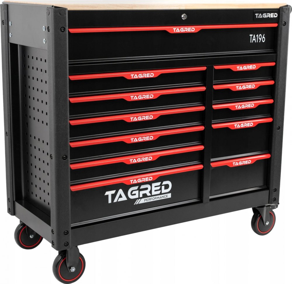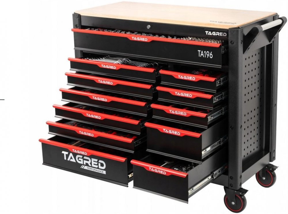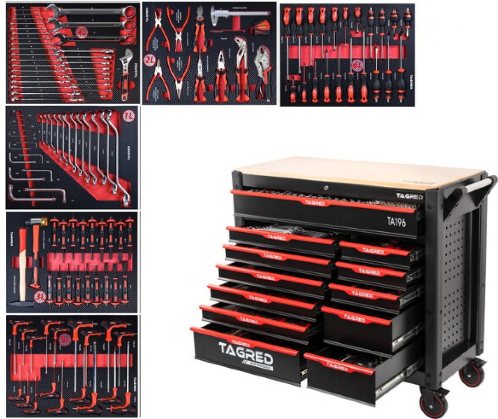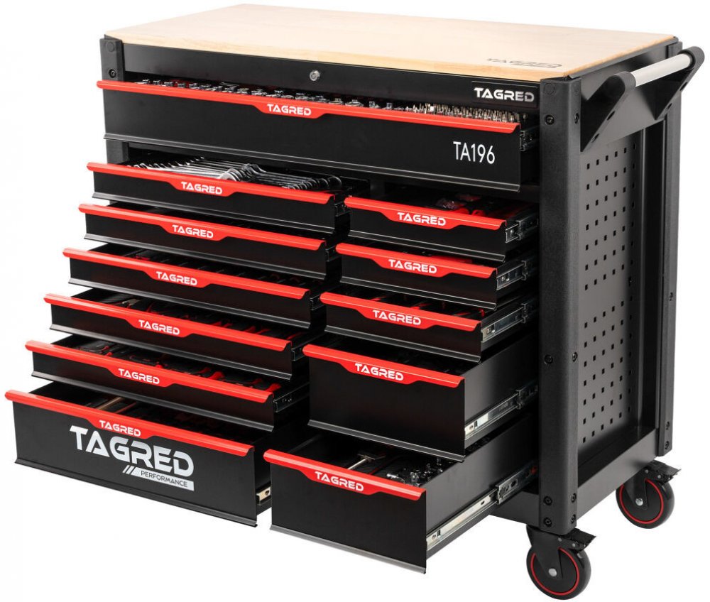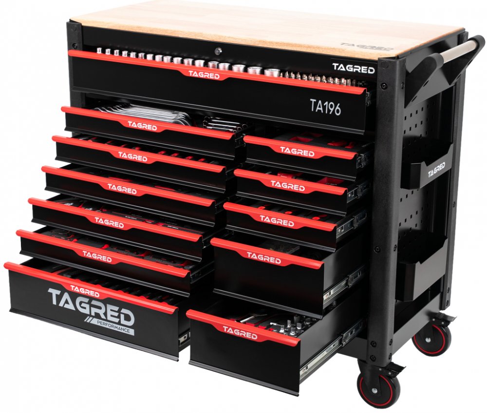 Dílenský vozík Tagred je vybaven doplňkovou sadou nejkvalitnějších nástrojů, které uspokojí potřeby i nejnáročnějších uživatelů. Bohaté vybavení skříně TAGRED vám umožní přizpůsobit sadu nástrojů potřebám nejnáročnějších dílenských úkolů