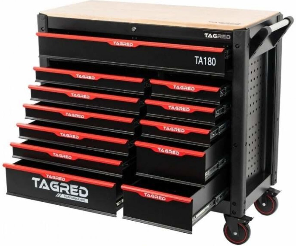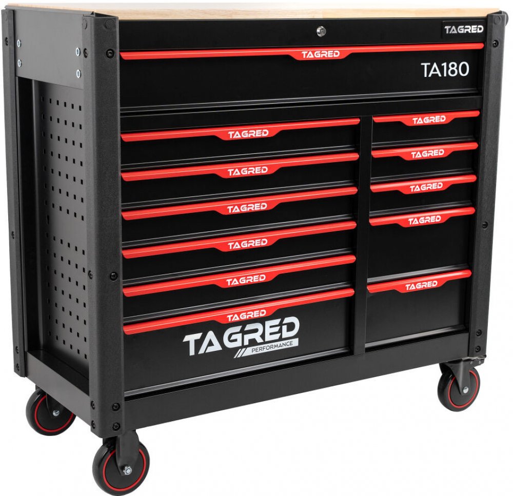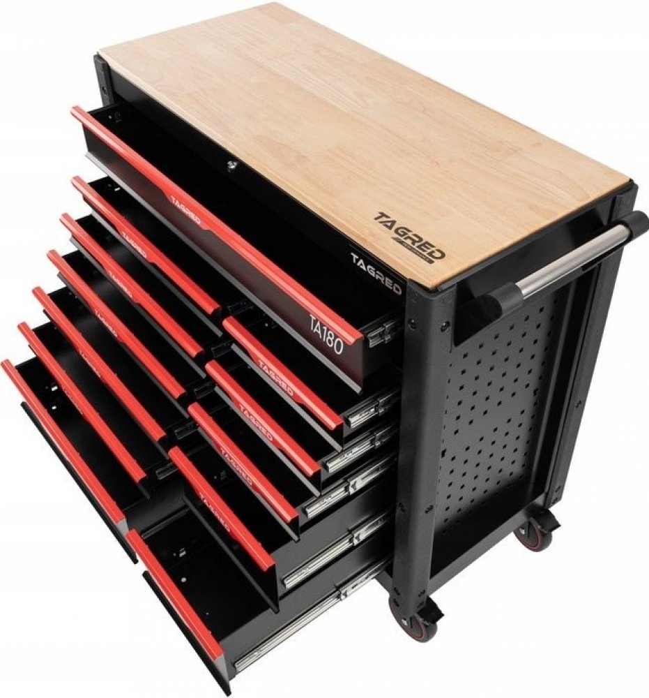 Dílenský vozík na nářadí (prázdný) s dřevěnou deskou, velký, 12 zásuvek, Tagred TA180
