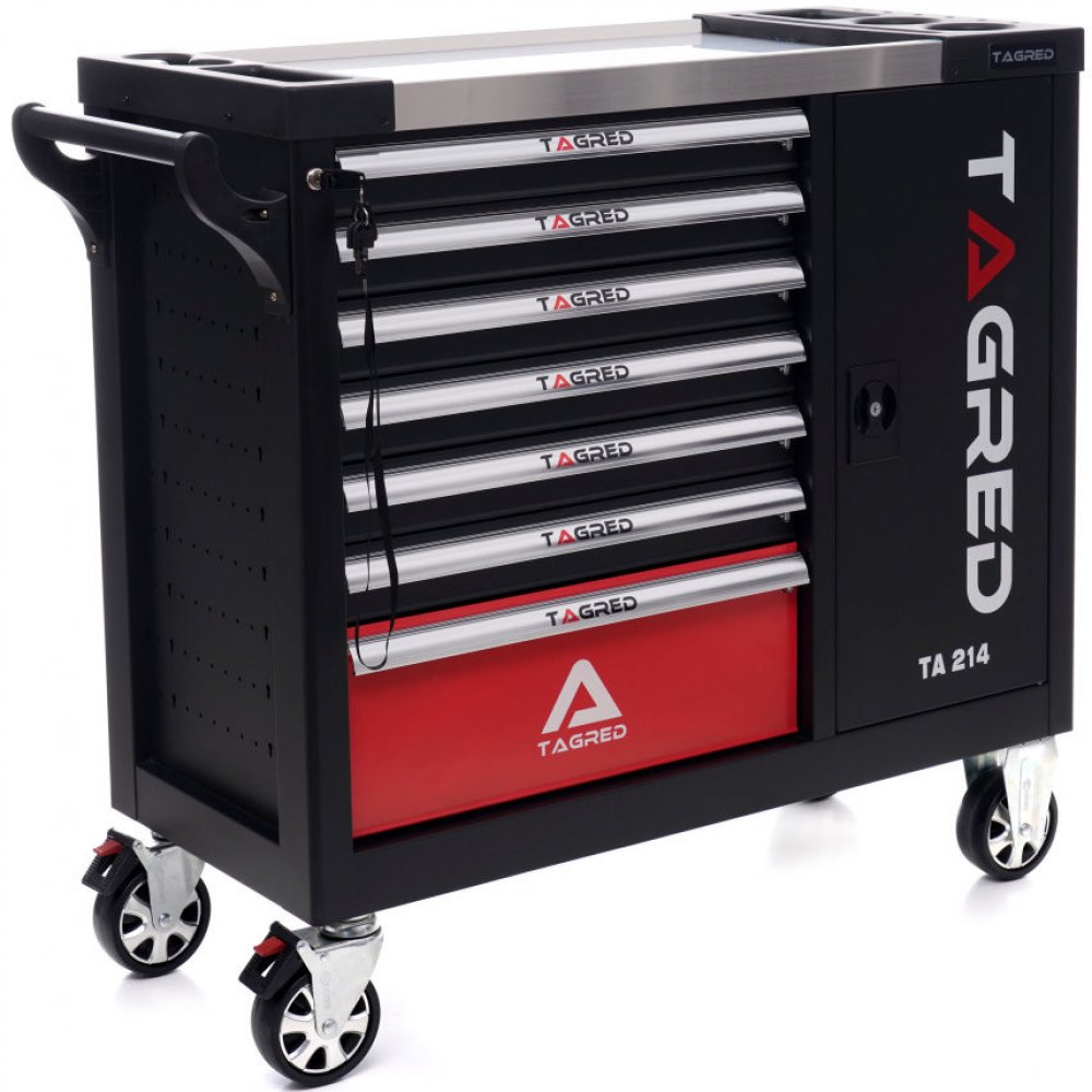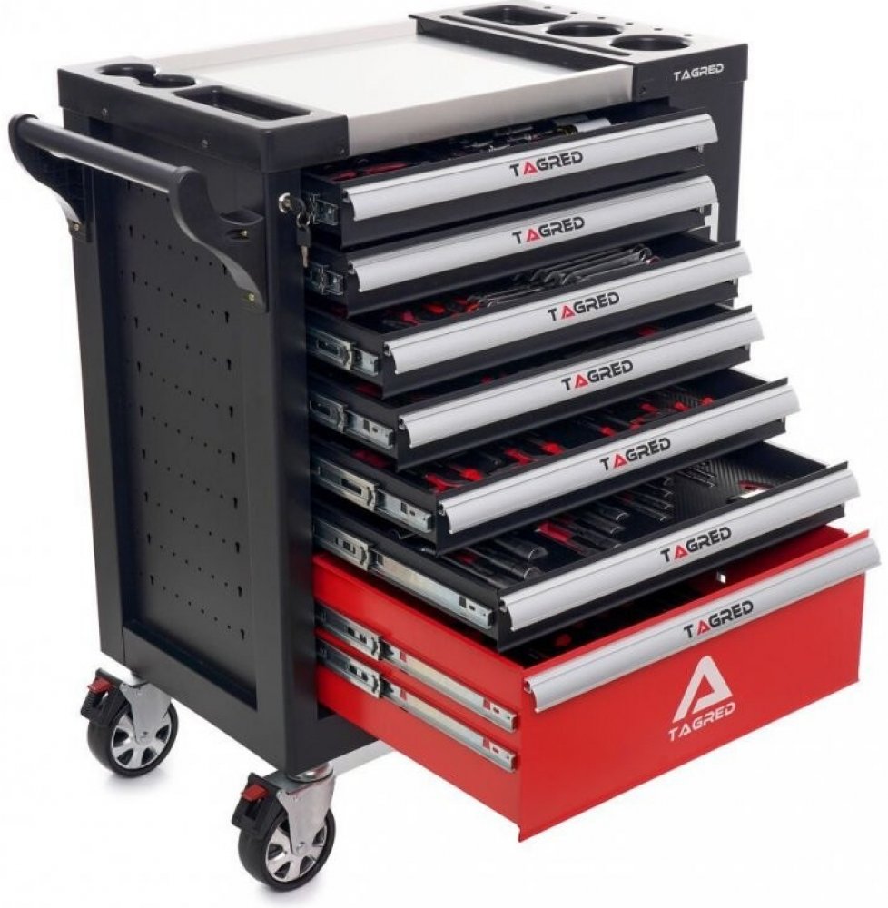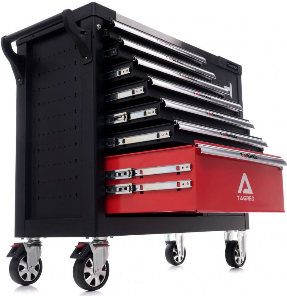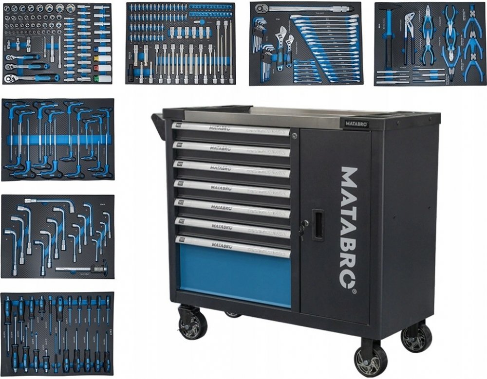 - Vozík obsahuje 298 značkových nástrojů umístěných v zásuvkách