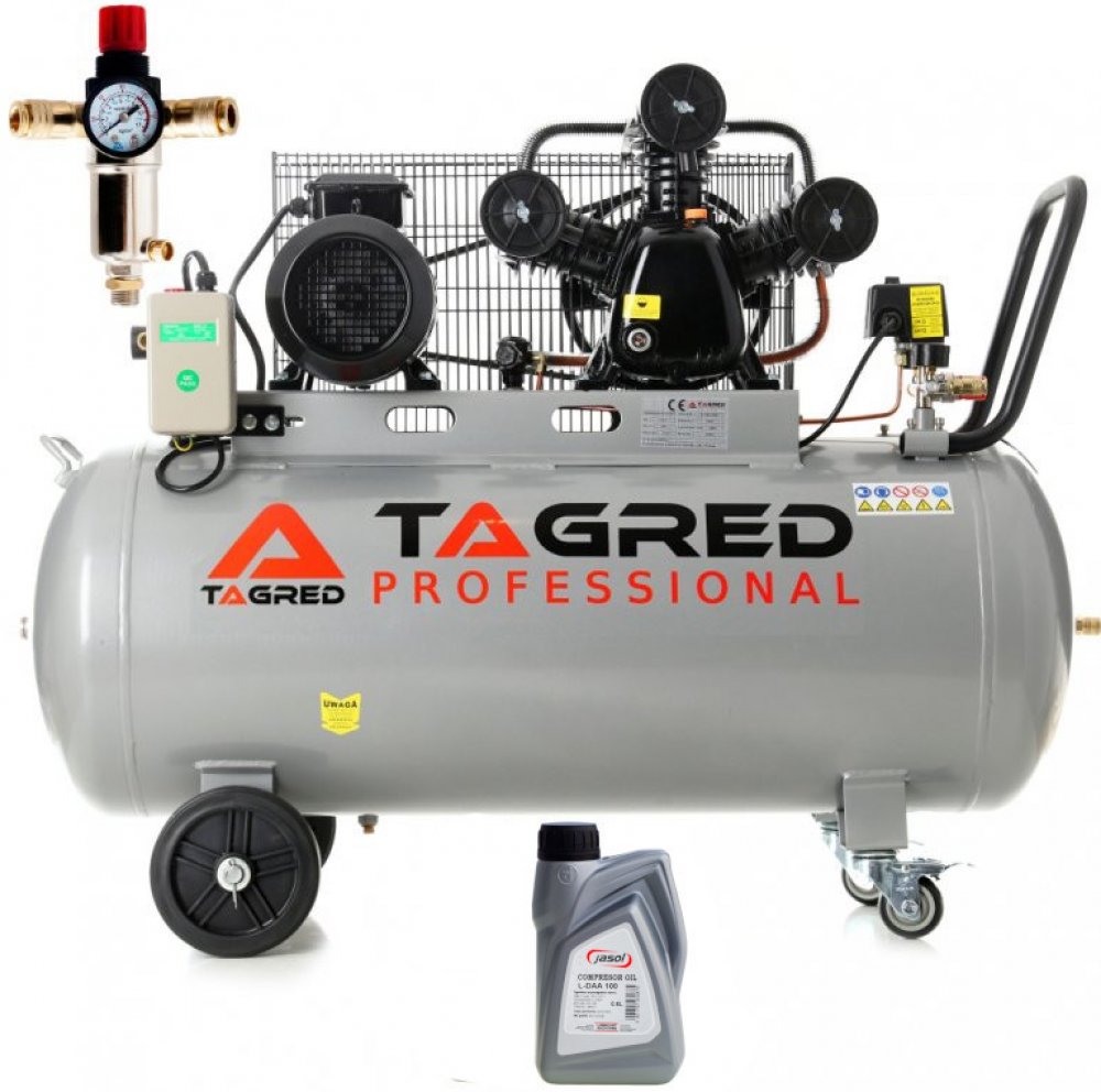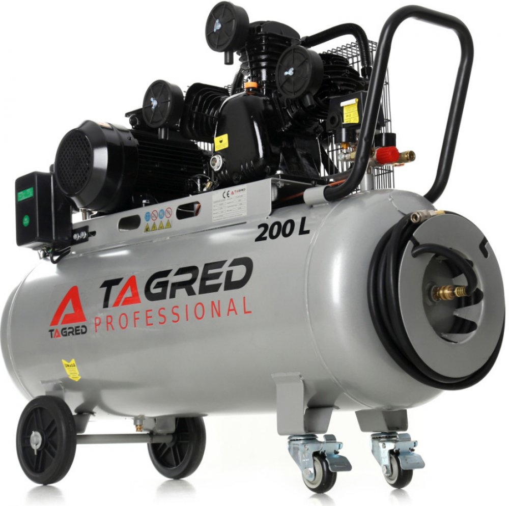 Výkonný a odolný kompresor pro profesionální i domácí použití. TAGRED TA309B je silný trojpístový olejový kompresor s objemem 200 litrů a napájením 400V. Ideální pro použití v autodílnách, garážích, na farmách i ve výrobě.