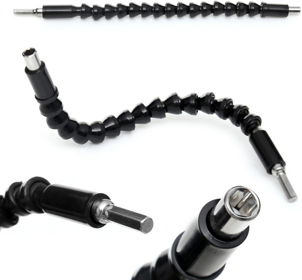 Naše flexibilní prodloužení vám umožní šroub šroubovat na místě, kde se nevejde vrtačka! Jednoduše ohýbejte prodloužení a přiložte jej k jednomu z jeho konců. Když se konec prodlužovače otáčí, aktivuje pružiny, což umožňuje šroub dotáhnout. Nástroj je vyroben z velmi odolného materiálu, který vydrží dlouho – i po opakovaném ohýbání.
