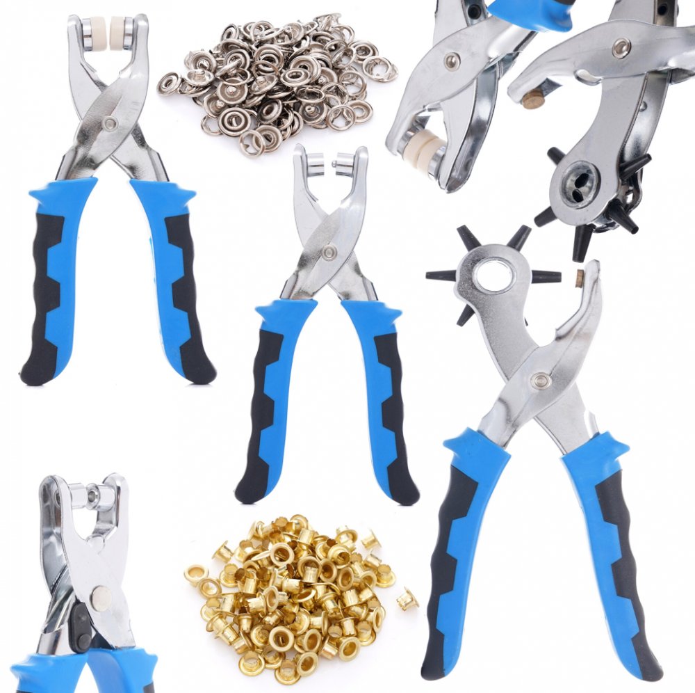 Vysoce kvalitní kožená sada 5v1 ideální pro výrobu dírek, montáž oček nebo patentů. Kleště jsou určeny na materiály jako: filc, kůže, textil, plastová fólie, lepenka a mnoho dalších. Naše sada je nenahraditelná při krejčovských a obuvnických úpravách oděvů a obuvi. Je velmi snadno použitelná a ergonomická: má mimo jiné ...