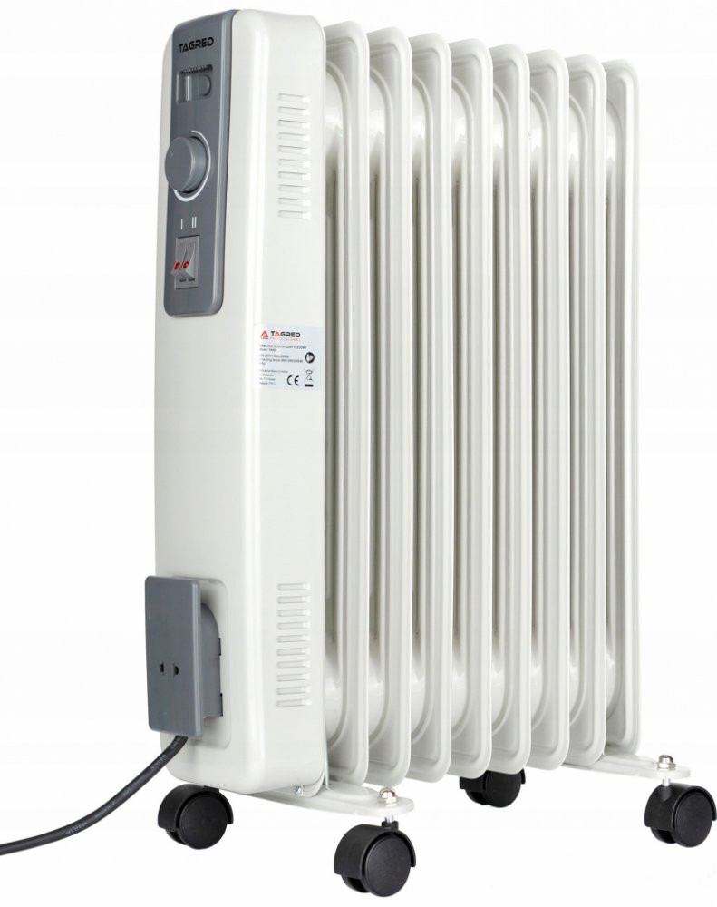 Olejový ohřívač značky Tagred, model TA920, má až 9 žeber a maximální výkon zařízení je 2000W. Díky vlastnostem, jako je okamžitá připravenost k zahájení práce, snadné použití a mobilita, které umožňují použití jednoho zařízení na různých místech, jsou použitelné prakticky v každé místnosti. Z bezpečnostních důvodů je zařízení vybaveno ochranou proti přehřátí a termostatem.