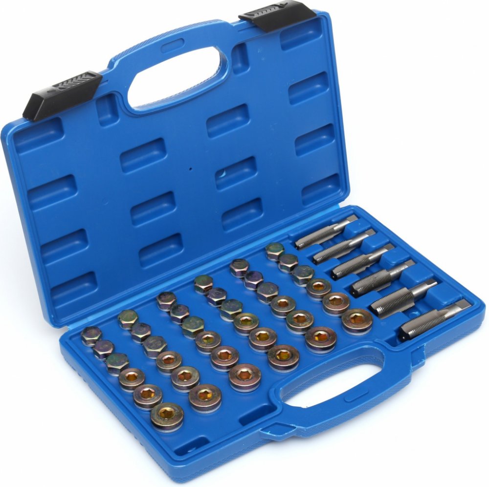Profesionální prémiová sada je ideálním řešením pro opravu závitů na vypouštěcích zátkách olejové vany, převodovky a dalších součástek. Tato sada je navržena tak, aby pasovala na většinu standardních závitů používaných v osobních automobilech a lehkých nákladních vozech.