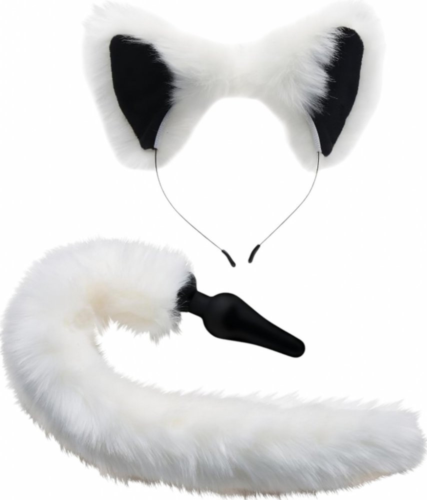 Tailz liščí anální dildo a čelenka černobílá