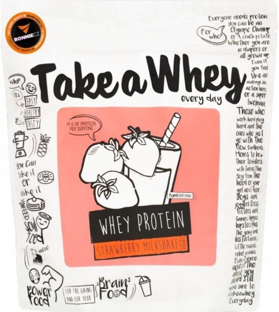 Take-a-Whey 907 g syrovátkové práškové 19.0 g 28.0 g 32 ks 97.44 kcal L-glutamin, L-lysin, sukralóza syrovátkový koncentrát, fruktóza, glycin 11.2 g/100 ml